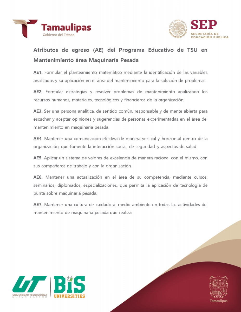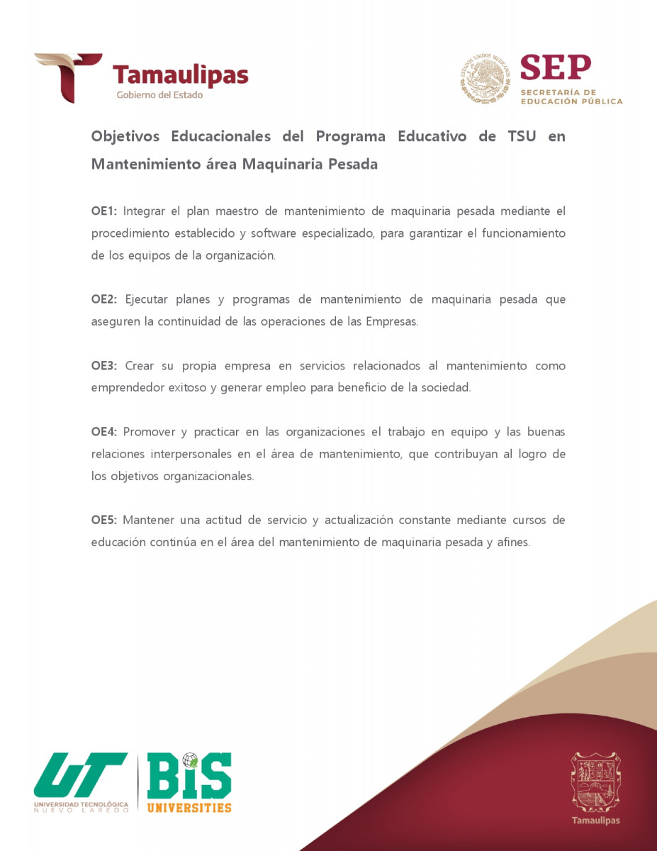 El Técnico Superior Universitario en Mantenimiento área Maquinaria Pesada cuenta con las competencias profesionales necesarias para su desempeño en el campo laboral, en el ámbito local, regional y nacional.